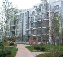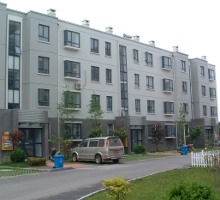 5-storey walkups - quality apartments Built to an estate configuration so that landscaping and maintenance can be provided. Note the solar hot water heaters between the windows. |